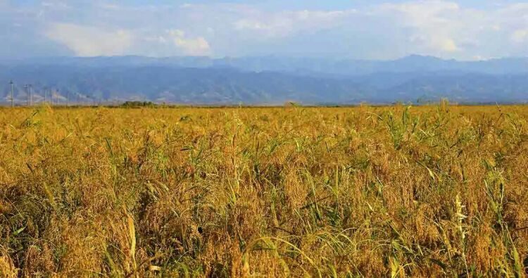 在天山北麓准噶尔盆地南缘的木垒县,种植了一种耐旱、耐贫瘠的农作物——糜子。每年5月份播种,9月份就能收割。木垒县三粮酒厂使用糜子作原料酿制糜子酒,产品多达98种。以精选的糜子、优质的泉水和纯手工酿造的山粮酒具有酒香浓郁、细腻、入口甘冽、落口平和,饮后不上头、不头疼的独特风格。