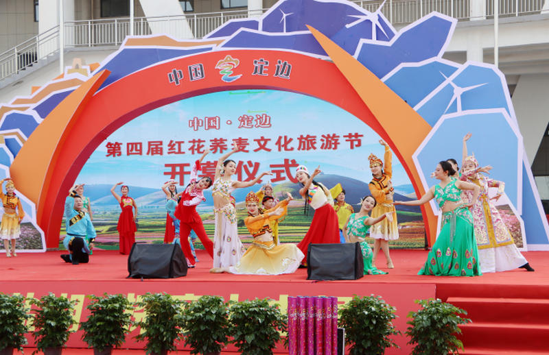 盐湖古堡邀贵客,田园花海迎嘉宾。每年八月前后,是定边这座塞上小城最美的时候。红花荞麦雨后疯长,漫山开遍,粉的荞麦花、黄的黄芥花、白的马铃薯花……成片花田将群峰尽染,万亩花浪奔向四面八方。8月28日,就在这片歌与花海、诗和远方的田野上,以“走三边、看花海,游千年盐湖、探塞上古堡”为主题的中国·定边第四届红花荞麦文化旅游节在定边县体育场盛大开幕,一场“以花为媒”的文化旅游盛宴也在定边这座广袤神奇的小城正式拉开帷幕。