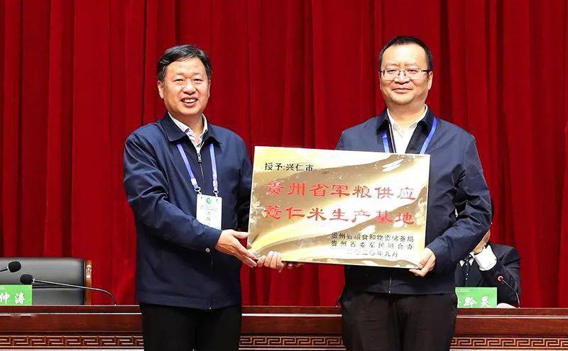 会议宣读了《省粮食和储备局 贵州省委军民融合办关于授予兴仁市“贵州省军粮供应薏仁米生产基地”称号、明确5家企业为“贵州省军粮供应薏仁米加工企业”的决定》。并授予兴仁市“贵州省军粮供应薏仁米生产基地”牌匾;授予兴仁薏仁米电商有限公司、贵州兴仁聚丰薏苡有限公司等5家企业“贵州省军粮供应薏仁米加工企业”牌匾。