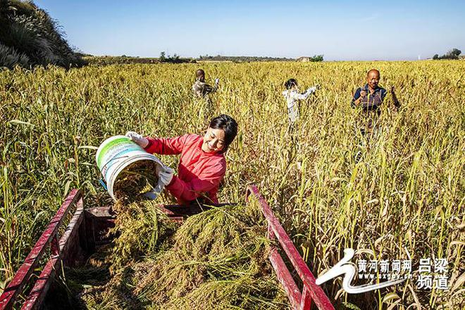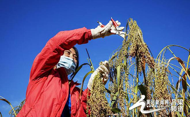 黄河新闻网吕梁讯?又是一年丰收季,春种一粒粟,秋收万颗籽,糜子迎来了收割期。一支支、一穗穗,弯着腰、垂下头,一颗颗红中透亮的米粒如红宝石一样镶嵌在糜穗上,惹人喜爱成熟的糜穗总是谦逊低首,沉甸甸向季节不时致意,糜子丰收了,农民脸上带着喜悦!