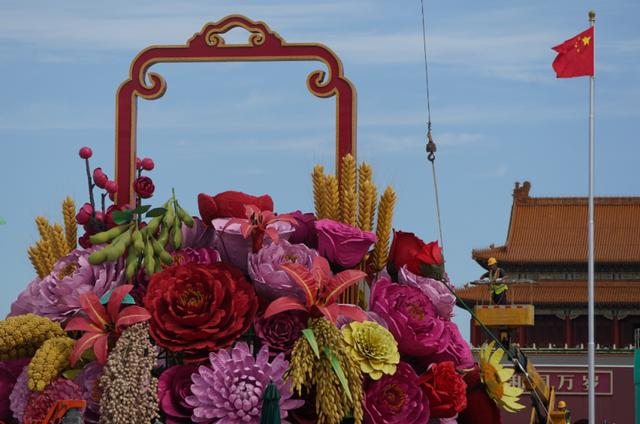 2023年的国庆,装满花朵和五谷的巨型花篮将亮相天安门广场。为了把五谷制作得栩栩如生,花艺师专门研究了我国各地的粮食作物。