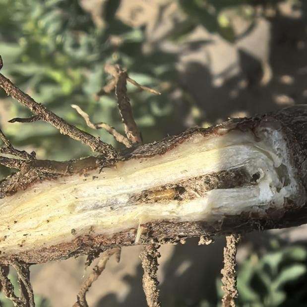蚕豆豆杆黑潜蝇幼虫及危害症状