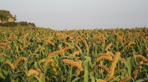 据国家统计,2016年全国谷子年种植面积85.7万hm2,总产229万t,平均单产2669kg/hm2。2012-2016年平均,年种植面积较大的省区依次是山西、内蒙、河北、陕西、辽宁、吉林、河南、山东、甘肃、黑龙江、宁夏和贵州,上述12个省区谷子面积占全国谷子总面积的99%,其中68%的面积和64%的产量分布在华北干旱最严重的山西、内蒙、河北三省区,平均年种植面积山西居第一位,年产量河北居第一位。各省区间由于自然和生产条件的差异,单产水平差异较大,以吉林、黑龙江、河北单产水平较高,宁夏、河南、陕西单产水平较低,2012-2016年吉林省谷子平均单产5125.35kg/hm2,宁夏、河南平均单产仅1500kg/hm2左右。