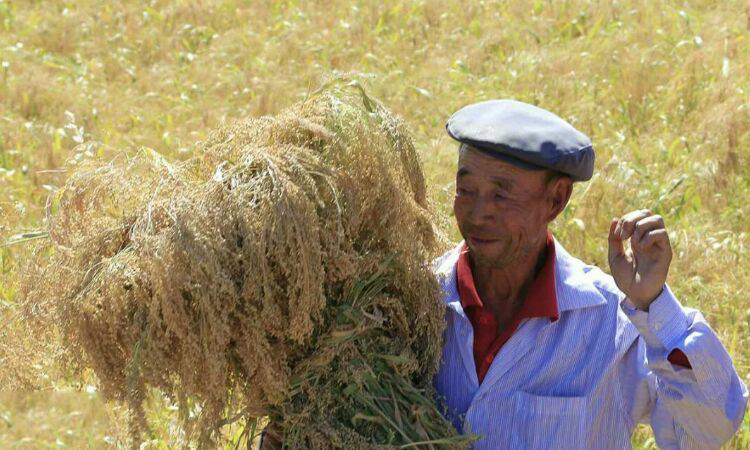 在天山北麓准噶尔盆地南缘的木垒县,种植了一种耐旱、耐贫瘠的农作物——糜子。每年5月份播种,9月份就能收割。木垒县三粮酒厂使用糜子作原料酿制糜子酒,产品多达98种。以精选的糜子、优质的泉水和纯手工酿造的山粮酒具有酒香浓郁、细腻、入口甘冽、落口平和,饮后不上头、不头疼的独特风格。