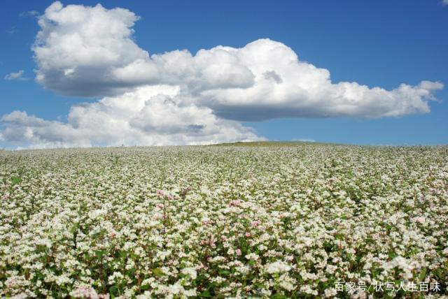 至于它们花儿的形态颜色,就一点也想不起来了。白居易有诗曰:“霜草苍苍虫切切,村南村北行人绝,独出门前望田野,月明荞麦花如雪。”(白居易《村夜》)。苏东坡也有“荞麦如铺雪”的诗句,杨万里也有“雪白一川荞麦花”的诗句,这样看来,荞麦花是白色的应该可以确定的了。而“荞麦花开似故乡”(明代诗人,镏松)的诗句则更能令我动容沉醉。