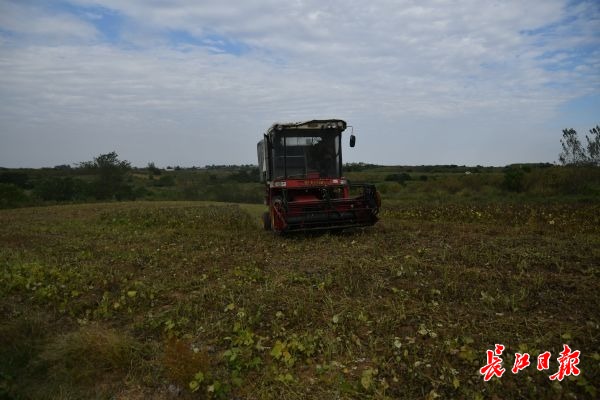 普通收割机即可收割绿豆。 记者潘璐 摄