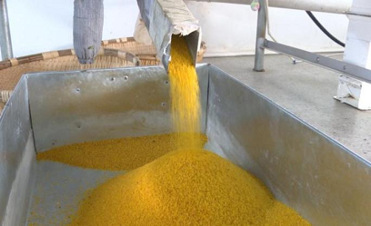 金灿灿的糜穗从收割机转运到拖拉机,再到热锅翻炒、碾米、筛米等工序后,摇身一变为大家喜闻乐见的沙拉米。
