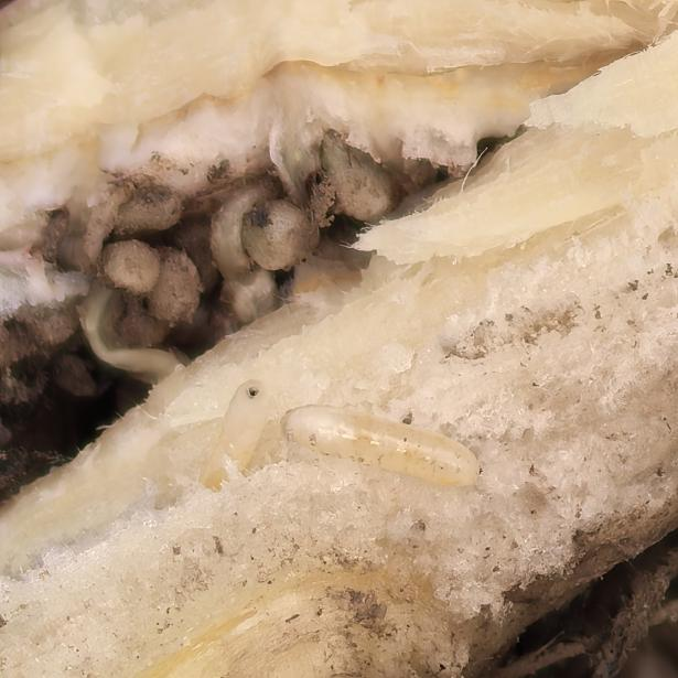 蚕豆豆杆黑潜蝇幼虫及危害症状